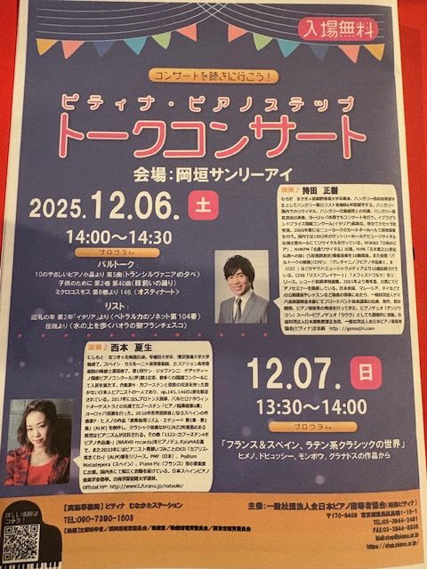 12月6日(土)持田正樹ピティナピアノステップ・トークコンサート@岡垣サンリ―アイ